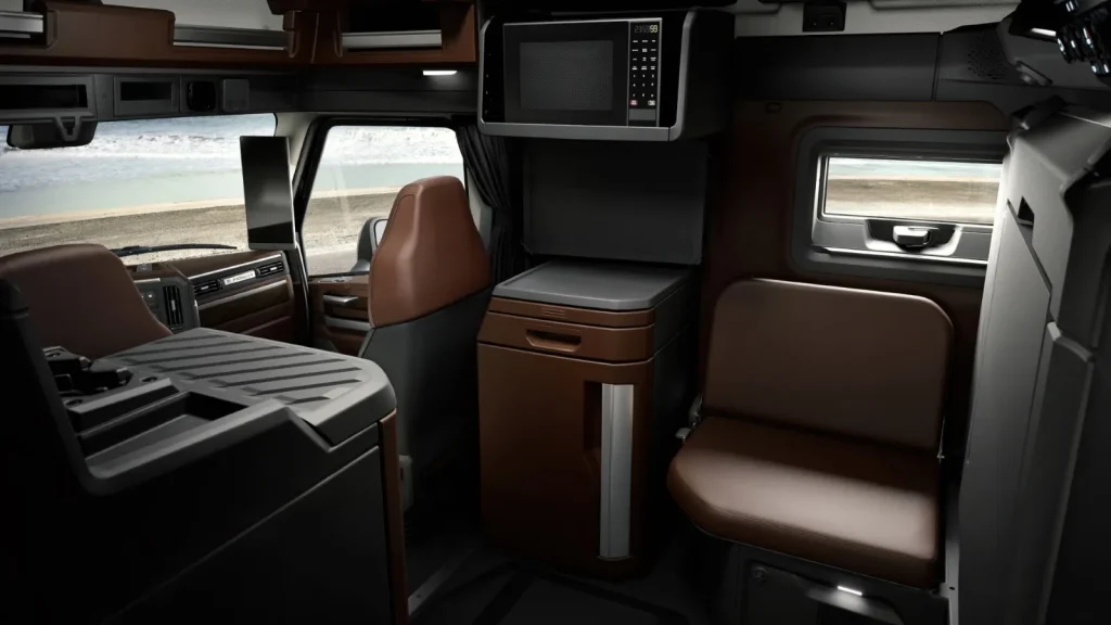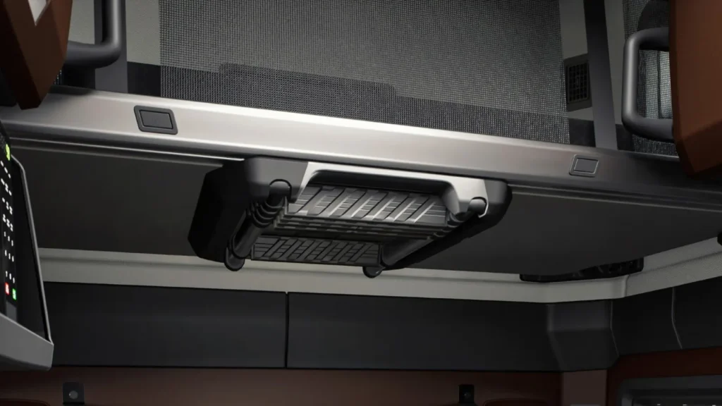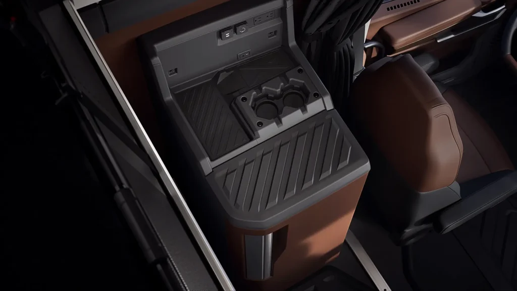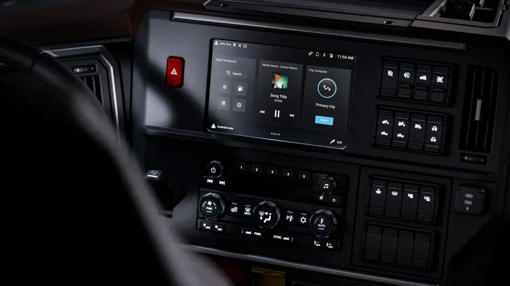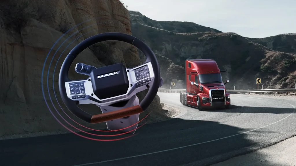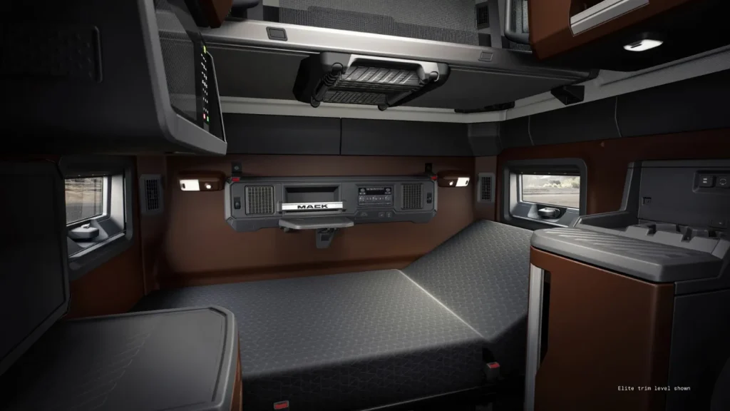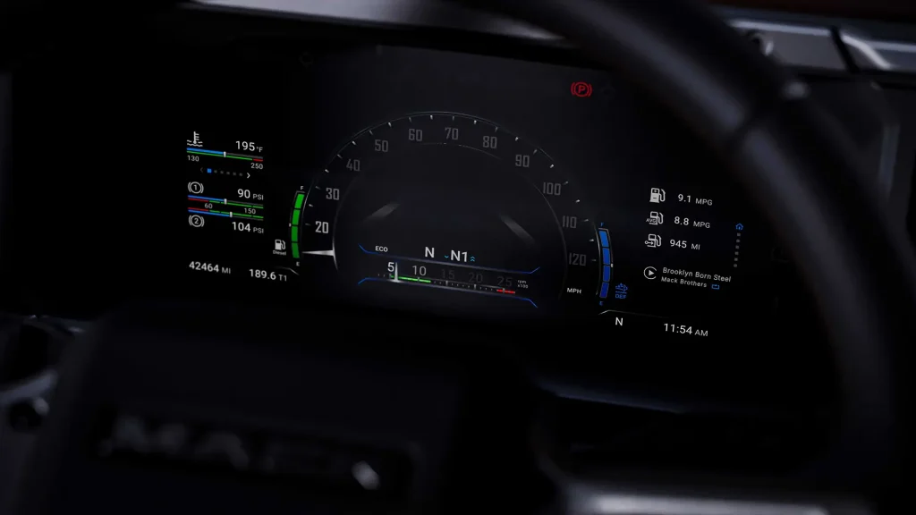 Pensée pour le confort du chauffeur, la cabine du Pioneer allie ergonomie, espace et technologie. Sièges chauffants et ventilés, tableau de bord HD, éclairage ambiant, et insonorisation de haut niveau créent un environnement de conduite apaisant et productif. Le système Mack Connect offre une surveillance en temps réel de la consommation, des entretiens, de la santé du moteur et plus encore. Intégré à Apple CarPlay® et Android Auto™, le système d’infodivertissement garde le chauffeur connecté, en sécurité et efficace. Le Pioneer ne fait pas que livrer : il transforme chaque trajet en expérience maîtrisée.